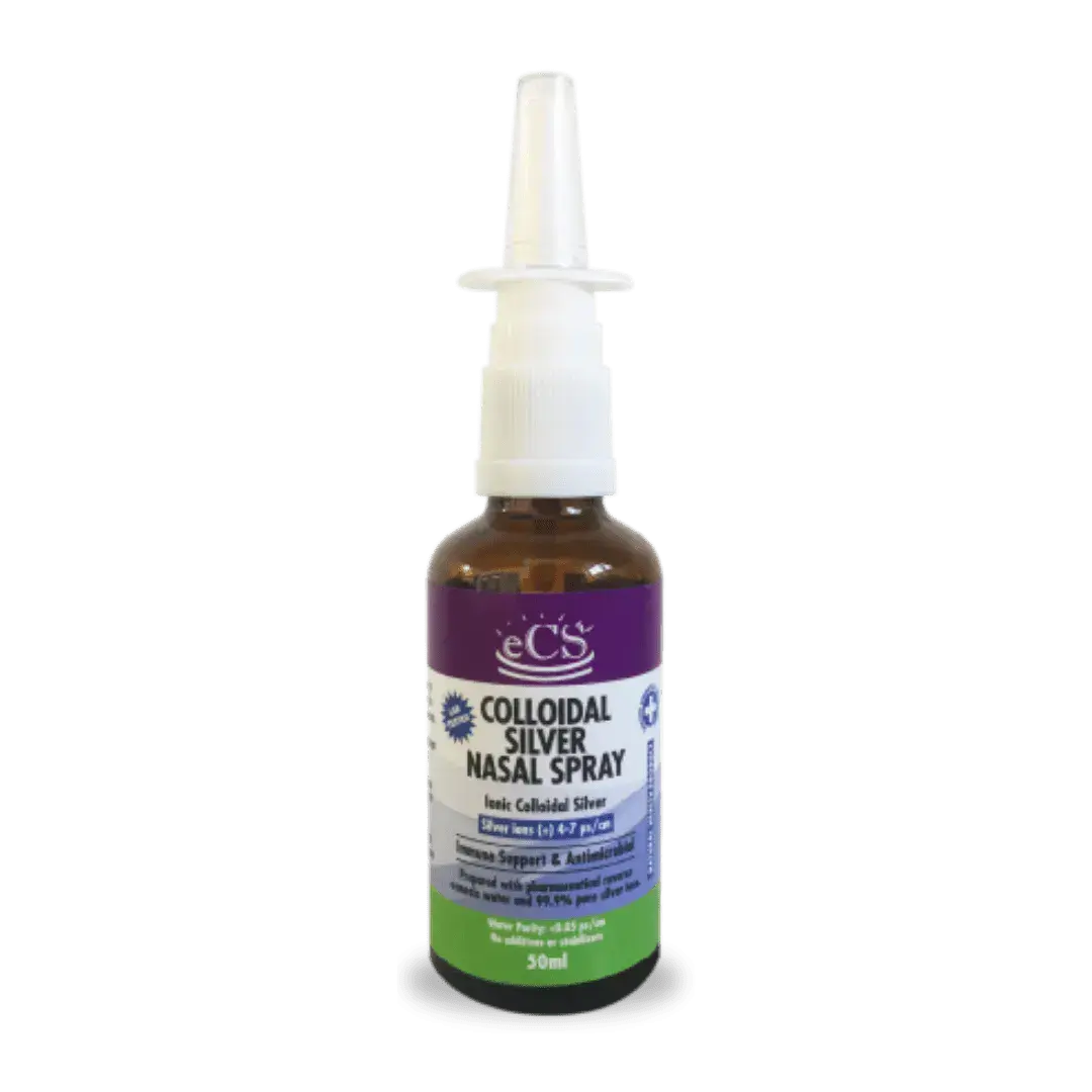 eCS Colloidal Silver Nasal Spray has natural anti-bacterial, anti-viral, anti-fungal and anti-microbial properties and supports the immune system. Fast-acting nasal spray. Safe for adults, children, and animals.